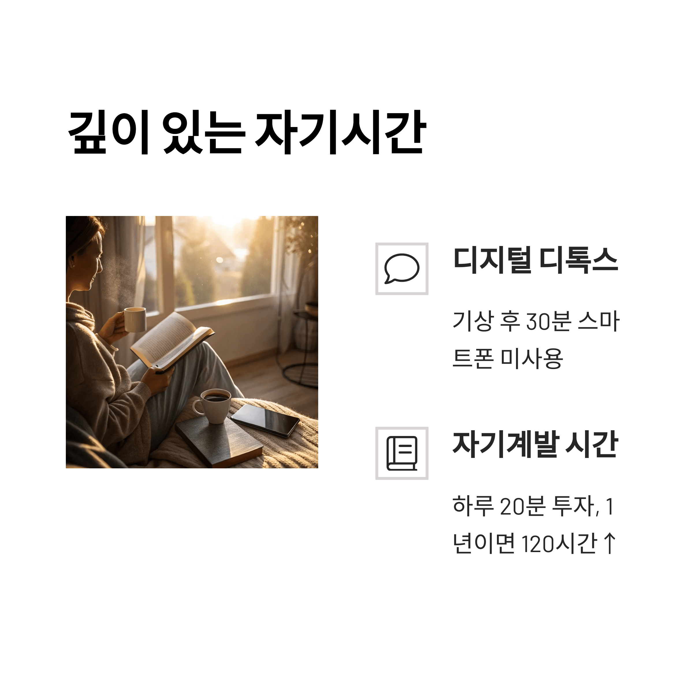 성공자들은 ‘아침 1시간 디지털 프리’ 실천율이 60% 이상입니다.