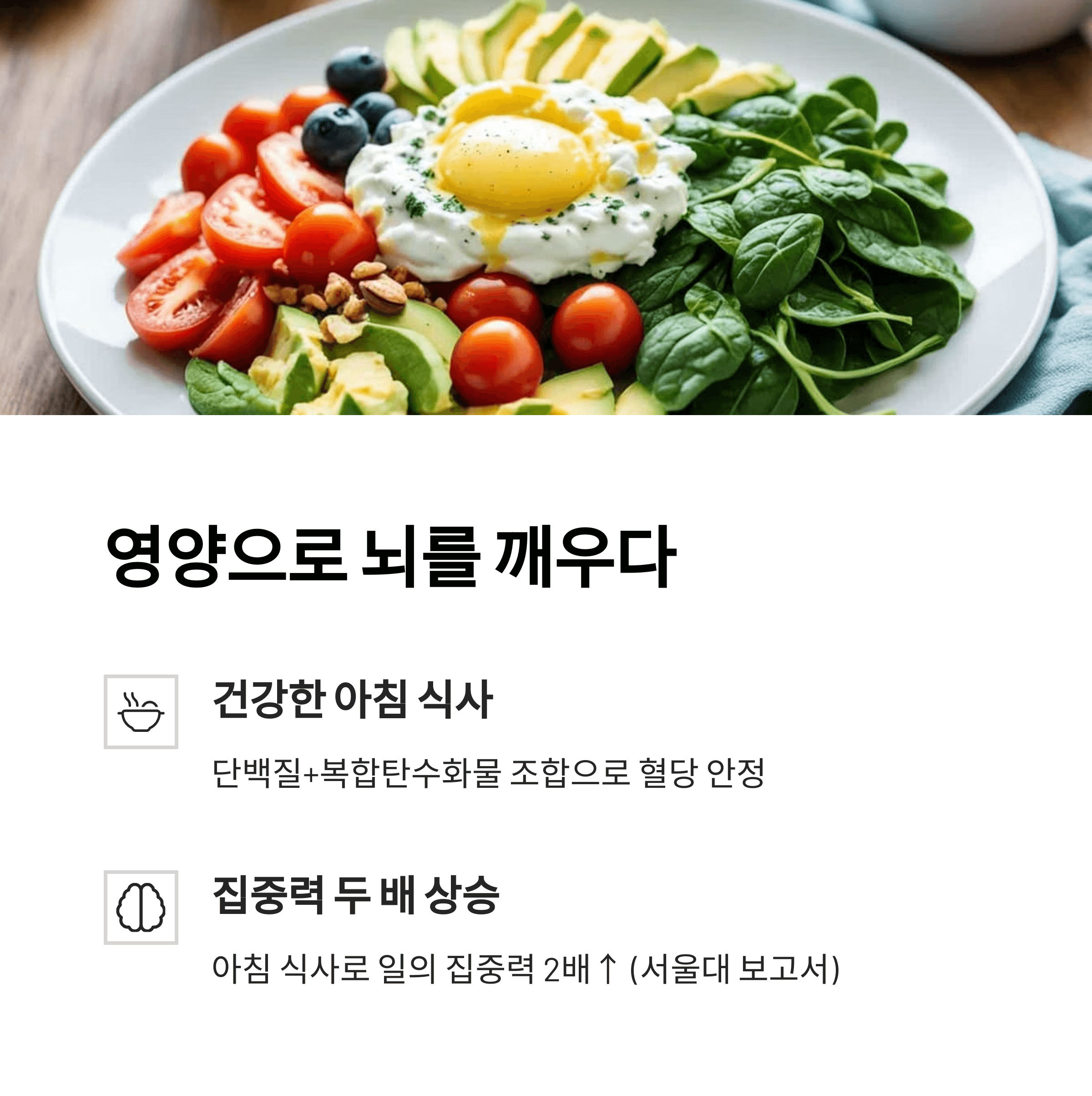자연식 위주로 구성된 간단한 아침 식사는 뇌 활성화와 에너지 유지에 좋습니다.